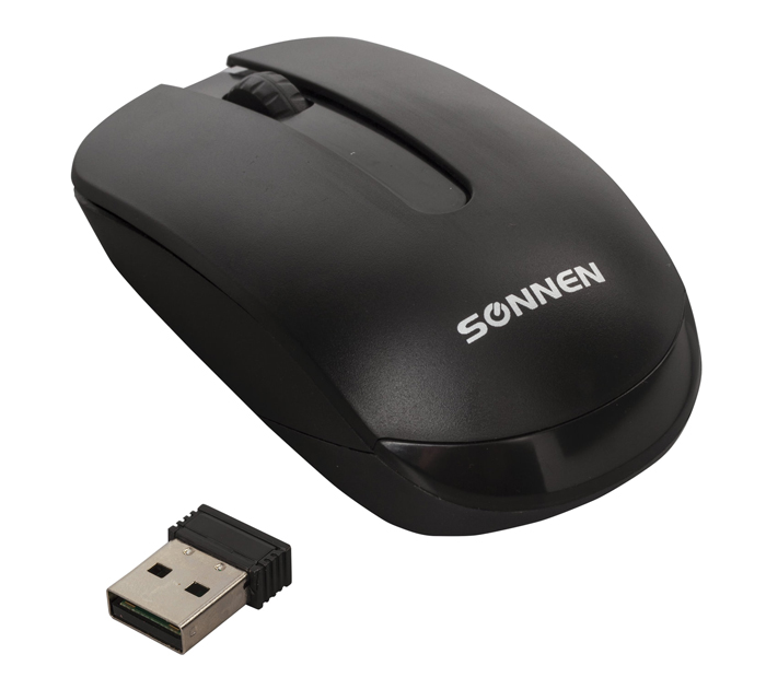 Мышь компьютерная Sonnen «M-3032» беспроводная, 3 кнопки, радиус действия 10м, черная