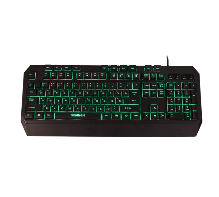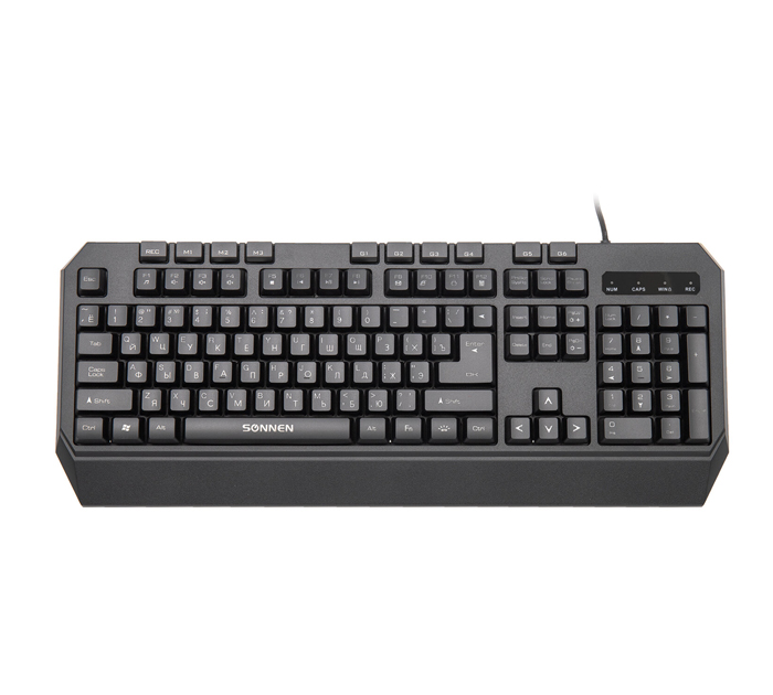 Клавиатура Sonnen «KB-7700» проводная USB, 104 клавиши + 10 программируемых клавиш, LED-подсветка, черная