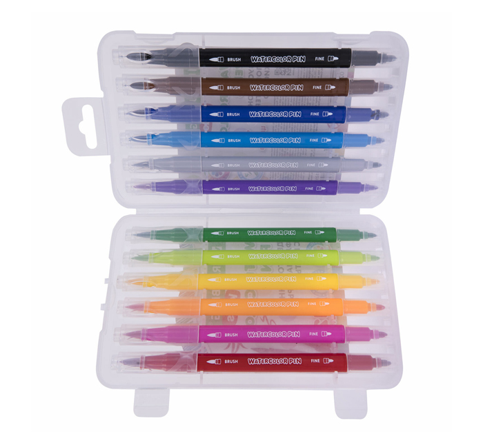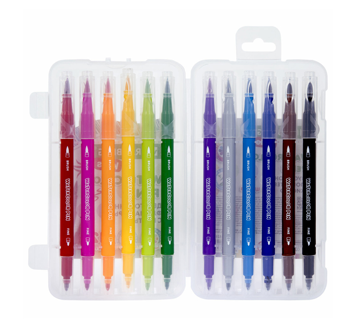 Фломастеры Brauberg Kids двусторонние, 12 цветов, смываемые, наконечник-кисть