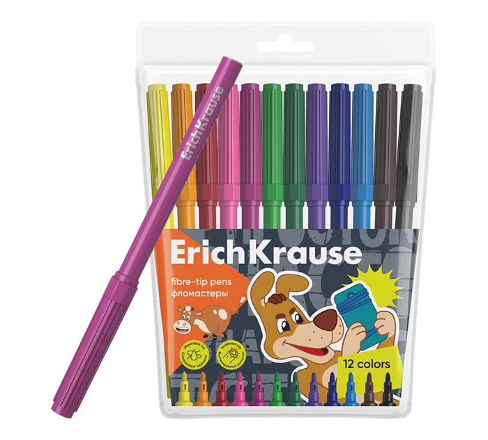Фломастеры ErichKrause со смываемыми чернилами на водной основе. Идеально подходят как для рисования, так и для раскрашивания. Широкая палитра ярких цветов. Наконечник сохраняет форму при интенсивном использовании. Чернила на водной основе не имеют запаха, отстирываются с большинства тканей и поверхностей. Герметичный корпус из полипропилена не образует острых сколов при поломке и предотвращает высыхание чернил. Фломастеры снабжены вентилируемыми колпачками, окрашенными в тон корпуса.