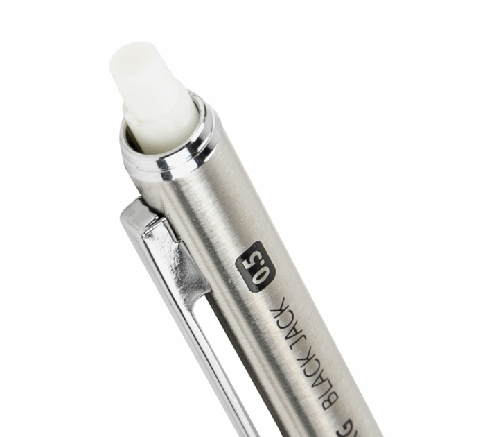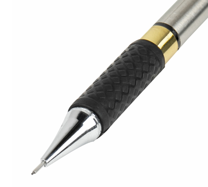Механический карандаш BRAUBERG «Black Jack» с металлическим корпусом стального цвета и удобным резиновым упором, исключающим скольжение пальцев во время письма. Карандаш с нажимным механизмом заправлен грифелем HB, всегда заточен, готов к работе и дает тонкую ровную линию 0,5 мм, а встроенный ластик поможет быстро и легко исправить ошибку. Стильный дизайн карандаша и эргономичный корпус с комфортной зоной захвата сделает письмо легким и точным. Страна-производитель - Китай