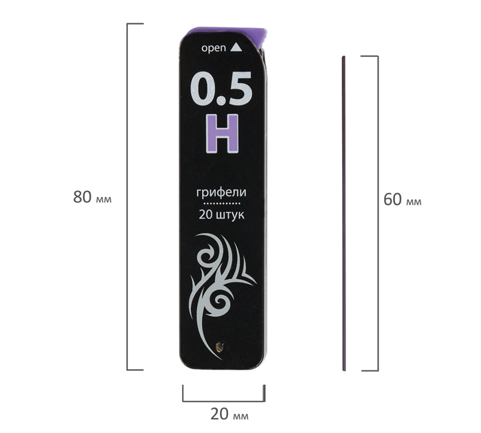 Грифель Brauberg «Black Jack» H, 0.5мм, 20шт