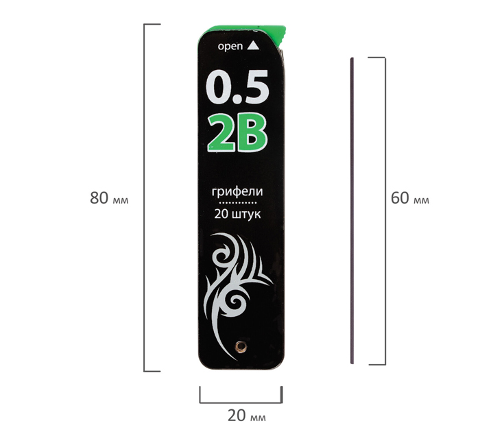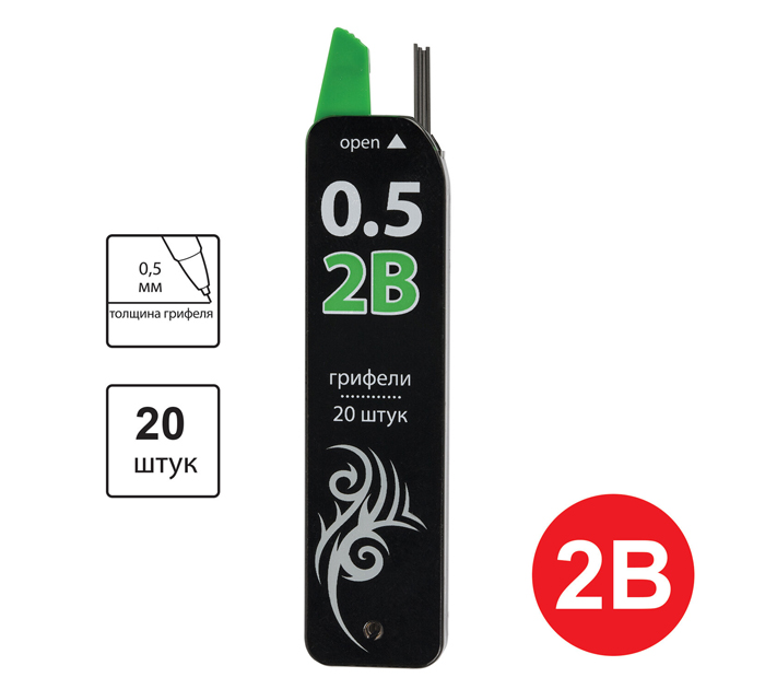 Грифель Brauberg 2В, 0.5мм, 20шт