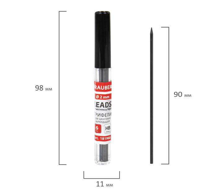Грифель Brauberg HB, 2мм, 6шт, в тубе