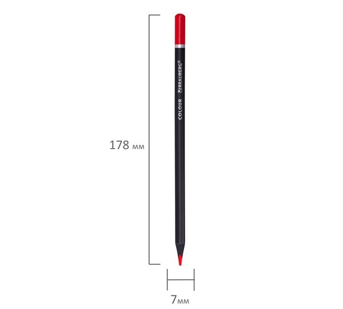 Трехгранные цветные карандаши Brauberg «Black Wood» в стильном матовом корпусе из черного дерева обеспечивают гладкое письмо благодаря супер мягкому грифелю. Особое качество красящего пигмента обеспечивает насыщенные яркие цвета. Набор состоит из 24 цветов: малиновый, красный, оранжевый, песочный, бледно-оранжевый, желтый, бледно-желтый, бледно-зеленый, темно-зеленый, аквамариновый, бледно-голубой, голубой, темно-голубой, синий, фиолетовый, сиреневый, темно-розовый, розовый, бледно-розовый, персиковый, коричневый, серо-коричневый, серый, черный. Наконечник дублирует цвет стержня. Рисуйте легко и с удовольствием благодаря эргономичной трехгранной форме корпуса карандашей. Мягкая древесина ценных пород обеспечивает легкую и плавную заточку. Тактильно приятный матовый корпус имеет цветовое обозначение грифеля на кончике карандаша. Грифель диаметром 3 мм обладает повышенной прочностью, насыщенностью цвета и мягкостью письма. Карандаши заточены и упакованы в картонную упаковку с европодвесом. Количество цветов: 24 шт. Количество карандашей: 24 шт. Серия: BLACK WOOD. Форма сечения корпуса: трехгранная. Материал корпуса: чёрное дерево. Грифель повышенной прочности: да. Заточка грифеля: да. Легко затачиваются: да. Диаметр грифеля: 3 мм. Длина карандаша: 176 мм. Упаковка: картонная коробка c европодвесом. Бренд - BRAUBERG. Производитель - Китай.