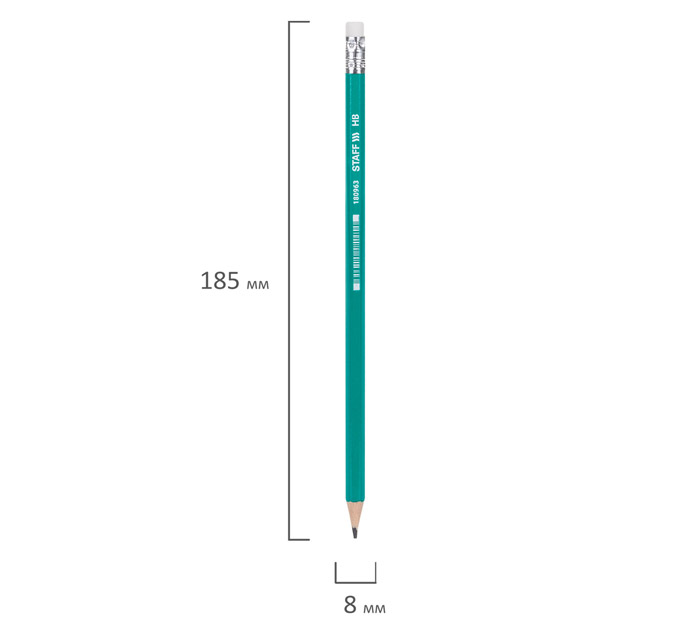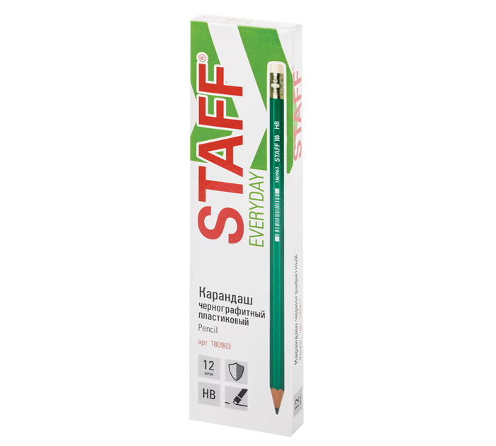 Карандаш чернографитный Staff «Everyday» - универсальный карандаш для дома, офиса и школы. Обладает средней жесткостью HB, подходит для чертежей, письма и рисования. Изготовлен из пластика, оснащен ластиком. Имеет шестигранное сечение. Карандаш длиной 185 мм легко точится и не крошится. Выполнен в зеленом цвете. Поставляется заточенным.