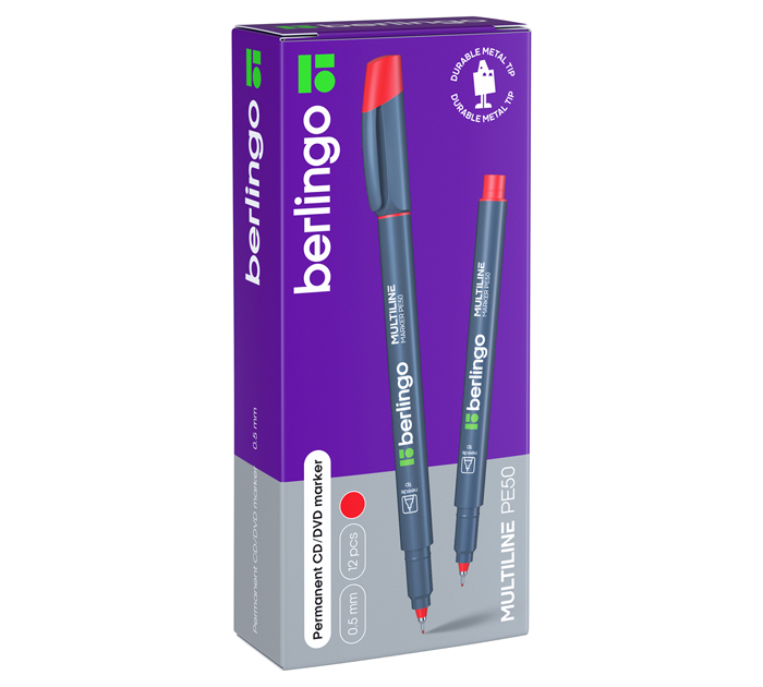 Предназначен для безопасного письма на поверхностях CD/DVD дисков. Закругленный пишущий узел. Ширина линии - 0,5 мм. Длина непрерывной линии - 600 м. Плотный колпачок с металлическим клипом предотвращает высыхание. Упакован в картонную коробочку по 12 шт.