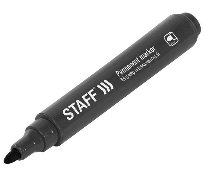 Перманентный маркер STAFF «Basic Budget PM-125» отлично подходит для повседневного использования. Предназначен для письма на любой поверхности: бумага, полиэтилен, дерево, стекло, металл, натуральная кожа, ткань, камень, плитка. Маркер перманентный черного цвета обладает круглым корпусом, диаметр которого 17 мм и длина 133 мм. Толщина линии письма - 3 мм. Особая нестираемая основа перманентного маркера обеспечивает такие качества, как стойкость к воздействию воды, низких и высоких температур. Благодаря спиртовой основе чернила быстро сохнут и не размазываются. Износостойкий наконечник устойчив к повреждениям и обеспечивает экономный расход чернил. Изделие не перезаправляется. Плотный колпачок с клипом предотвращает высыхание наконечника и чернил. Цвет корпуса и колпачка соответствует цвету чернил.Это товар эконом-сегмента, поэтому он отличается привлекательной ценой. Товар обладает базовым набором характеристик и простой упаковкой, при этом полностью соответствует основным требованиям потребителей., страна-производитель - Китай
