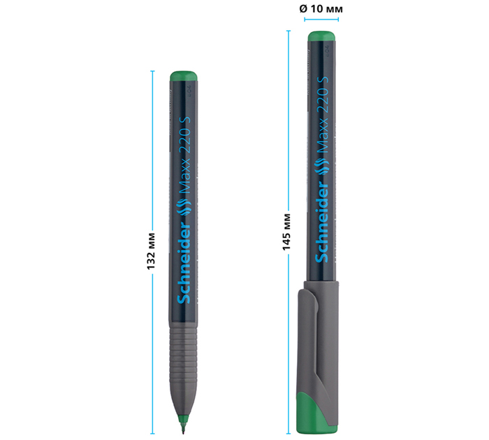 Письменные принадлежности Schneider разрабатываются и производятся только в Германии, их отличают функциональный дизайн, безупречное качество, надежность и экологичность. Перманентный маркер для письма на большинстве твёрдых поверхностей, включая картон, бумагу, металл, стекло, дерево и пластик, может находиться без колпачка до 3 дней и не высыхает. Чернила на спиртовой основе, без ксилола и толуола. Надписи быстро высыхают, не выцветают и не размываются. Сделано в Германии!