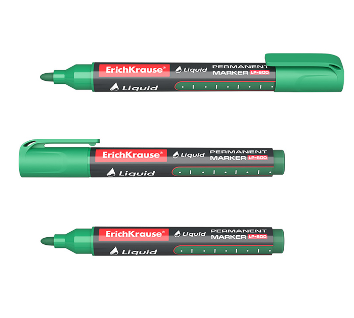 Маркер перманентный Erich Krause "Liquid LP-600" зеленый, с жидкими чернилами, 2.25мм