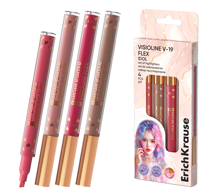 Маркеры текстовые (набор) Erich Krause «Visioline V-19 Flex Idol» 4 цвета, 0.6-3.5мм