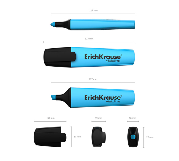 Текстмаркер предназначен для работы на всех типах бумаги, в том числе на бумаге для факсов и копировальных машин. Пишущий узел скошенной формы позволяет варьировать ширину письма. Широкая часть наконечника 5 мм удобна для выделения текста, а тонкая 0.6 мм – для подчеркивания. Цвет корпуса соответствует цвету чернил. Флуоресцентные чернила на водной основе быстро высыхают после нанесения и не оставляют следов на обратной стороне бумаги за счет тонкого и равномерного нанесения. Имеет узнаваемую запатентованную форму и стал абсолютным бестселлером в ассортименте текстмаркеров ErichKrause более чем в пятидесяти странах мира. Срок годности 5 лет.