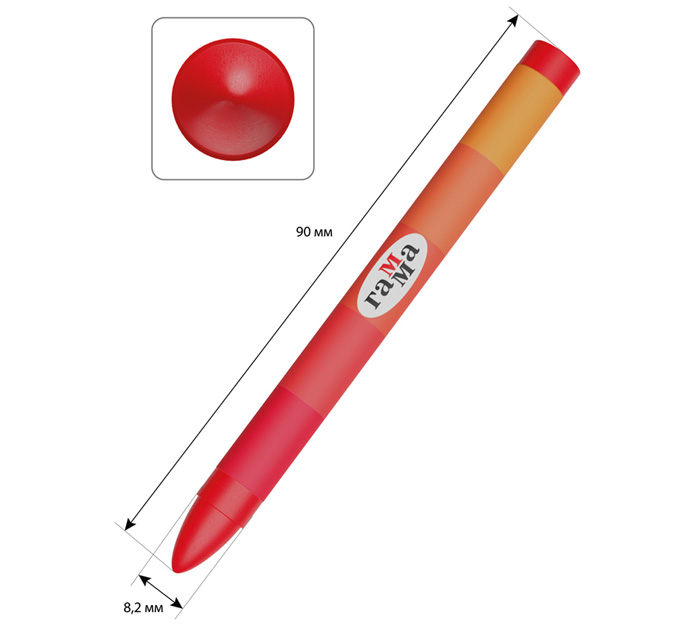 Яркие цветные мелки круглой формы не требуют сильного нажима, мягко рисуют на бумаге, картоне и любой шероховатой поверхности. Производятся на основе натуральных безопасных компонентов — воска и пигментов. Безвредны и гипоаллергенны. Не пачкают и не липнут к рукам. Без выраженного химического запаха. Каждый мелок обернут в бумажную гильзу и уже заточен. Длина мелка – 90 мм.
