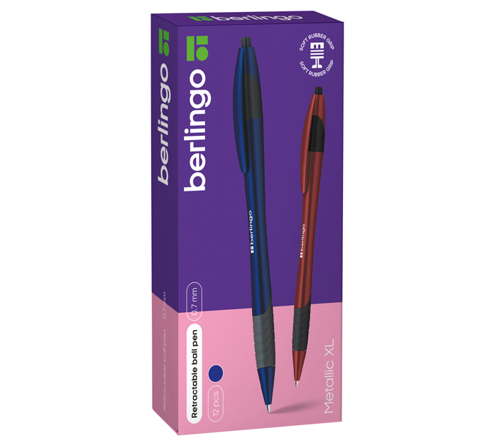Стильная автоматическая шариковая ручка Berlingo Metallic XL с пластиковым клипом и мягким резиновым грипом для комфортного письма выполнена в сдержанных, глубоких цветах с эффектом металлик. Утолщение в зоне захвата и кнопочная подача стержня обеспечивают дополнительное удобство при работе с ручкой. Цвет чернил – синий. Диаметр пишущего узла составляет 0,7 мм, благодаря чему ручка прекрасно подходит для любого стиля письма. Толщина линии письма составляет 0,35 мм, длина линии письма – 1000 метров. Уникальная запатентованная технология Smart Ink обеспечивает лёгкое и приятное письмо за счёт использования чернил пониженной вязкости, специальной конструкции пишущего узла и инновационных материалов шарика и пишущего узла. Инновационные компоненты, используемые для изготовления шарика пишущего узла (карбид вольфрама), обеспечивают долговечность и стабильность качества письма.