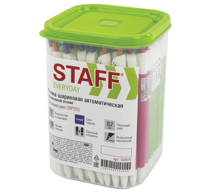 Ручка шариковая масляная автоматическая STAFF «OBP-253» - яркий аксессуар для ежедневного использования! Шариковая масляная автоматическая ручка имеет шестигранный корпус из ассорти цветов. Сменный стержень длиной 107 мм с игольчатым наконечником. Диаметр пишущего узла 0,7 мм создает тонкую линию письма 0,35 мм. Цвет чернил - синий. Цвет чернил: синий. Толщина линии письма: 0.35 мм. Диаметр пишущего узла: 0.7 мм. Форма наконечника: игольчатый. Длина сменного стержня: 107 мм. Чернила на масляной основе: да. Количество в комплекте: 1 шт.. Цвет корпуса: ассорти. Серия: OBP-252. Дизайн: без дизайна. Форма корпуса: шестигранная. Покрытие корпуса: без дополнительного покрытия. Упаковка: пластиковый стакан Бренд - STAFF. Производитель - Индия.