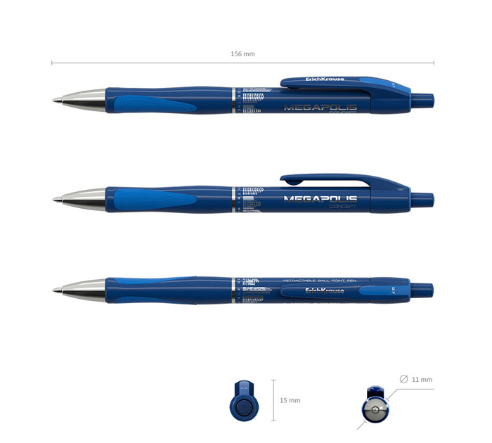 Ручка автоматическая Erich Krause «Megapolis Matic&Grip» синий стержень, узел 0.7мм, линия письма 0.35мм