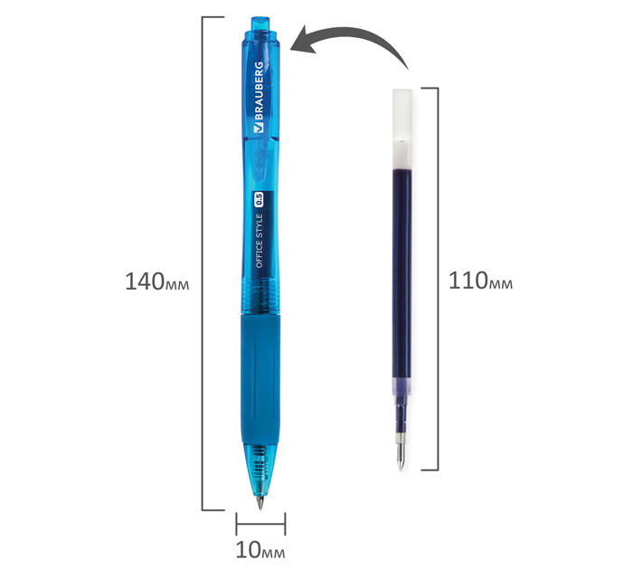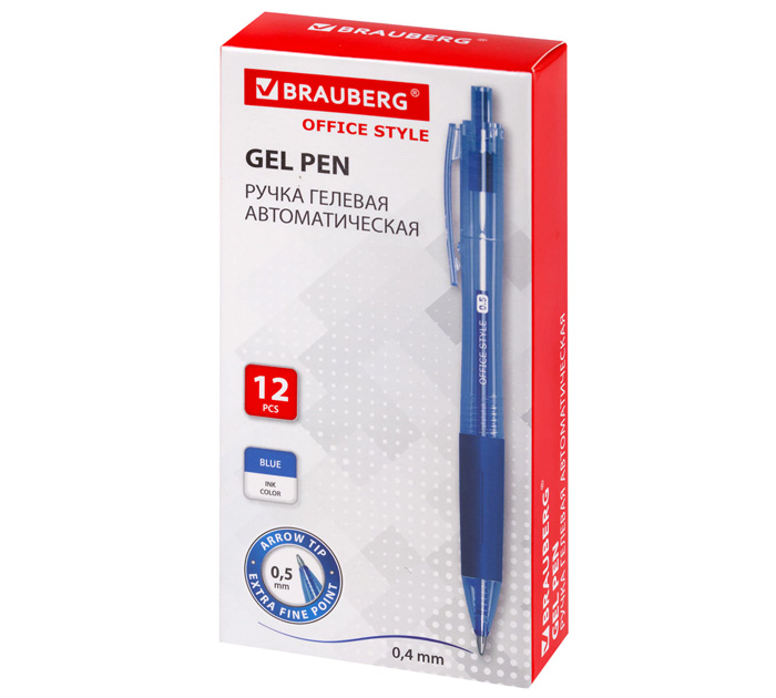 Автоматическая гелевая ручка BRAUBERG «OFFICE STYLE» – для ультрамягкого, комфортного письма. Комфортному письму способствует эргономичный упор для пальцев. Данная ручка станет ваши незаменимым другом и помощником в работе и учебе. Гелевая автоматическая ручка имеет круглый корпус. Оснащена кнопочным механизмом подачи стержня. Резиновый эргономичный упор для пальцев предотвращает скольжение ручки при письме. Сменный стержень длиной 110 мм со стандартным наконечником позволит использовать ручку максимально долго. Пишущий узел диаметром 0,5 мм создает линию письма, равную 0,4 мм. Цвет чернил – синий., страна-производитель - Китай