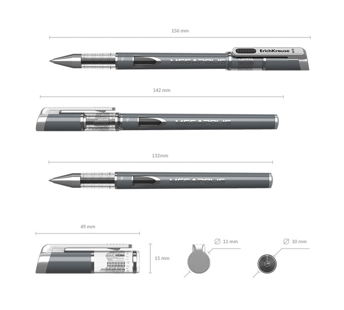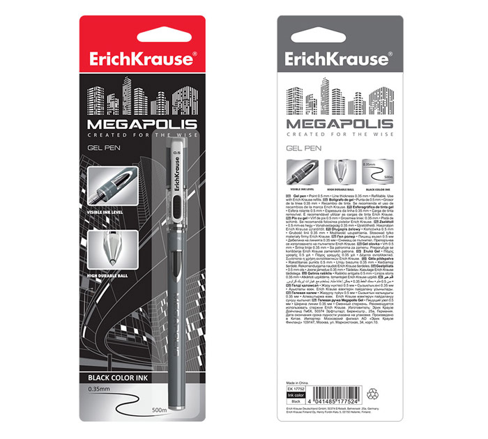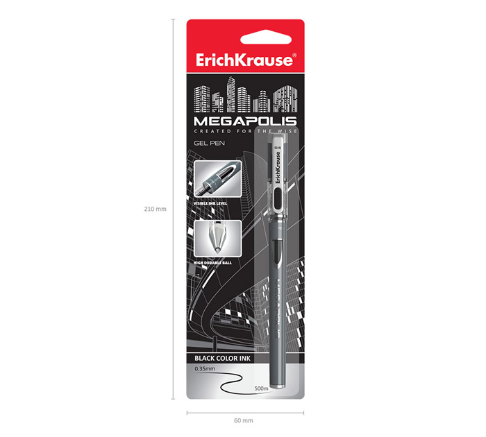 Ручка гелевая Erich Krause «Megapolis» черный стержень, 0.5мм, линия письма 0.35мм