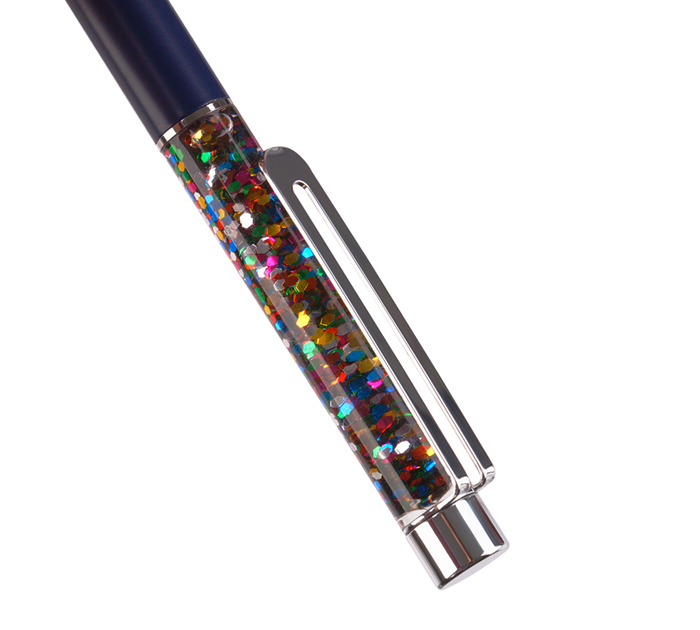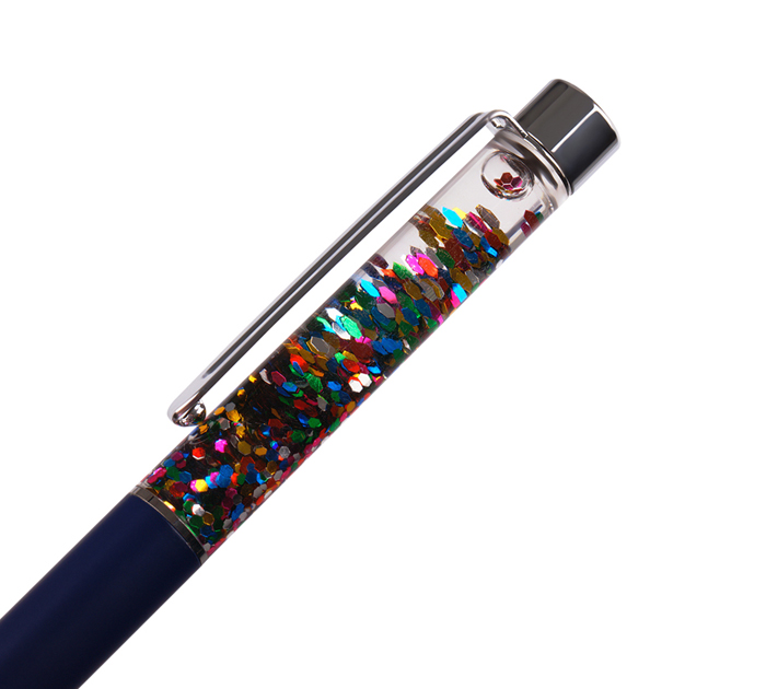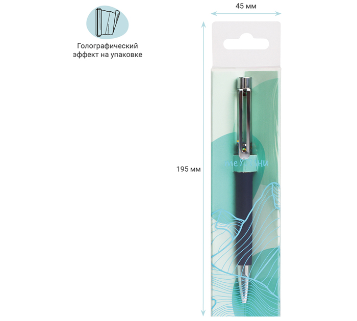 Шариковая ручка Meshu «Black sand» – это привлекательный аксессуар для ярких, смелых и успешных. Диаметр пишущего узла 1 мм. Толщина линии 0,8 мм. Ручка подойдёт для мягкого и быстрого письма. Серебряный корпус ручки из металла с темно-синим матовым эффектом украшен вставкой с разноцветным глиттером и дополнен металлическим клипом, с помощью которого ручку можно закрепить на одежде или ежедневнике. Благодаря упаковке с голографическими элементами, ручка может стать приятным подарком. Ручка оснащена поворотным механизмом, что говорит о надёжности и безопасности изделия, Стержень не повредится в сумке и не оставит следов на посторонних предметах. Благодаря чернилам синего цвета ручку можно использовать в работе или учёбе на постоянной основе.