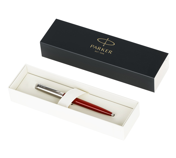 Шариковая ручка Parker с кнопочным механизмом из коллекции Jotter выполнена из нержавеющей стали и пластика красного цвета. Корпус покрыт лаком. Ручку можно закрепить на ежедневнике или кармане благодаря прочному зажиму в виде стрелы с характерным рисунком пера. Толщина линии письма – 0,8 мм, длина – 4 000 м. Ручка станет эффектным и значимым подарком. Она упакована в оригинальную картонную подарочную коробку Parker. В комплект входит шариковый стержень синего цвета.