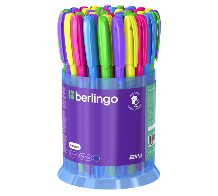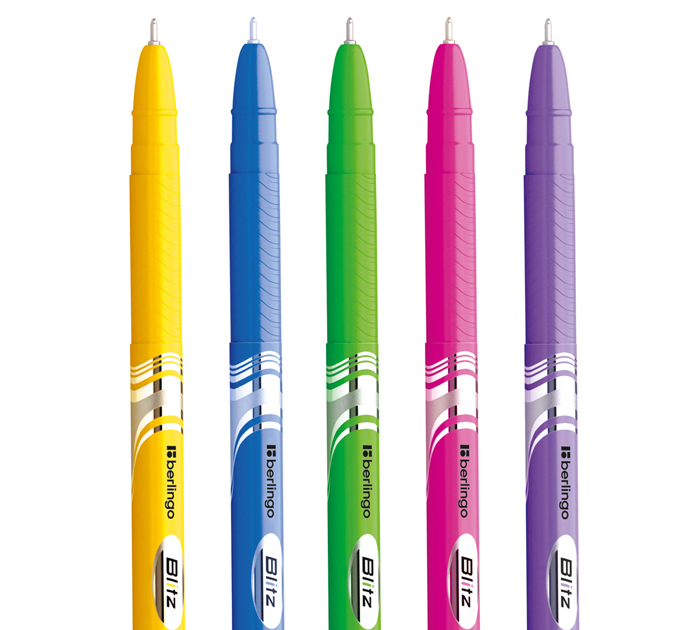 Яркая шариковая ручка Berlingo Blitz с колпачком и пластиковым клипом будет незаменимым помощником на учёбе или работе. Вентилируемый колпачок обеспечивает безопасность при использовании детьми. Рифление на корпусе в зоне захвата препятствует скольжению пальцев и создаёт дополнительный комфорт при письме. Диаметр пишущего узла составляет 0,7 мм, благодаря чему ручка прекрасно подходит для любого стиля письма. Толщина линии письма составляет 0,5 мм, а длина линии письма составляет 570 метров. Уникальная запатентованная технология Smart Ink обеспечивает лёгкое и приятное письмо за счёт использования чернил пониженной вязкости, специальной конструкции пишущего узла и инновационных материалов шарика и пишущего узла. Такими чернилами можно писать без дополнительных усилий даже при лёгком касании бумаги. Инновационные материалы, используемые для изготовления шарика пишущего узла (карбид вольфрама), обеспечивают долговечность и стабильность качества письма. Страна-производитель - ИНДИЯ.