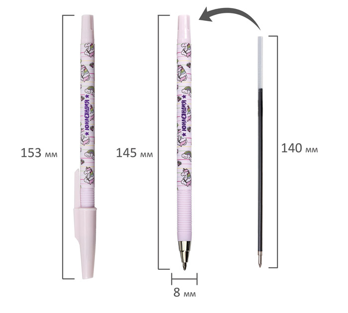 Шариковая ручка Юнландия «Unicorn» с мягким прорезиненным корпусом Soft Touch и изображением единорогов. Ручка имеет удобную прорезиненную зону захвата и стандартный наконечник. Диаметр пишущего узла, равный 0,7 мм, создает линию письма, равную 0,35 мм. Длина сменного стержня составляет 140 мм. Цвет чернил - синий. Удобный стакан для размещения ручек в розничном магазине. Цвет чернил: синий. Количество в комплекте: 1 шт. Толщина линии письма: 0.35 мм. Диаметр пишущего узла: 0.7 мм. Форма наконечника: стандартный. Длина сменного стержня: 140 мм. Серия: SOFT TOUCH PRINT. Стиль: с рисунком. Эргономичная зона захвата: резиновый держатель. Цвет корпуса: с дизайном. Длина письма: 1000 м. Дизайн: Unicorn. Форма корпуса: круглая. Покрытие корпуса: Soft-touch. Упаковка: пластиковая туба. Бренд - ЮНЛАНДИЯ. Производитель - Китай.
