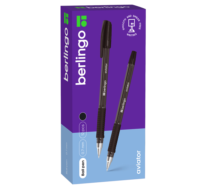 Шариковая ручка Berlingo Aviator - воплощение функционала и качества, и один из флагманов ассортимента бренда. Модель выполнена в массивном четырехгранном корпусе в цвет чернил. Зона захвата оснащена мягким резиновым грипом для предотвращения скольжения во время использования. Крупная текстура грипа и утолщение-упор для пальцев в нижней его части обеспечивают максимальный комфорт. Стержень ручки заправлен светло-синими немажущими чернилами, обеспечивающими аккуратную линию и чистоту письма. Наконечник - цельнометаллический и способен выдержать самые серьезные нагрузки. Современный технологичный дизайн, оригинальный колпачок с логотипом бренда придают ручке солидный и запоминающийся внешний вид. Ручка поставляется с пишущим узлом 0,7 мм (линия письма 0,5 мм), что делает ее универсальной и подходящей для любого стиля письма. Уникальная запатентованная технология Smart Ink обеспечивает лёгкое и приятное письмо за счёт использования чернил пониженной вязкости, специальной конструкции пишущего узла и инновационных материалов шарика и пишущего узла. Инновационные компоненты, используемые для изготовления шарика пишущего узла (карбид вольфрама), обеспечивают долговечность и стабильность качества письма. Длина письма: 850 м