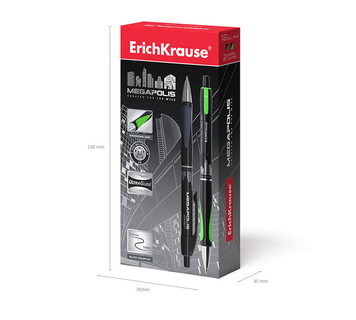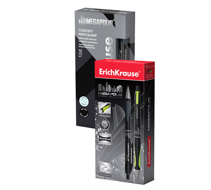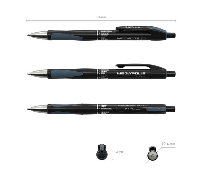 Ручка шариковая Erich Krause «Megapolis Matic&Grip» черный стержень, узел 0.7мм, линия письма 0.35мм