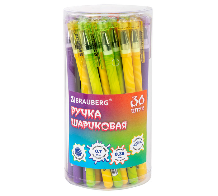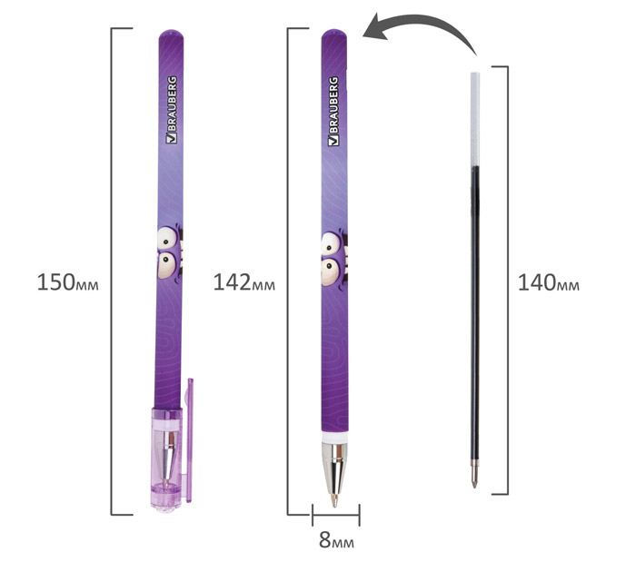 Ручка шариковая BRAUBERG «»МОНСТРИКИ«» - универсальный помощник для создания различных заметок и записей, идеально подходит для ежедневного использования. Ручка представлена в дизайнах ассорти с забавными монстриками, которые привлекают внимание своим необычным видом. Круглый корпус ручки имеет покрытие SOFT TOUCH, благодаря чему мягко ложится в руке при письме. Стандартный наконечник с диаметром 0,7 мм создает аккуратную линию письма, равную 0,35 мм. Синий цвет чернил делает ручку универсальной как для создания конспектов в школе, так и для ведения записей в офисе., страна-производитель - Китай.
