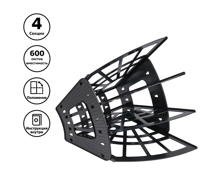 Современный элегантный дизайн модуля, украсит ваше рабочее место. Данный модуль можно расположить как вертикально, так и горизонтально. Предназначен для документов А4 формата. Сборно-разборная конструкция, простота сборки, прочность и устойчивость конструкции, гладкая полированная поверхность, материал полистирол.