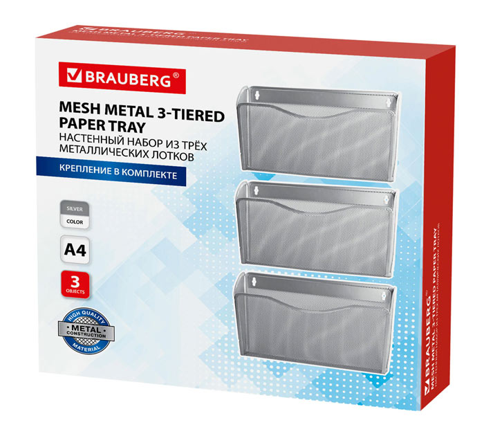 Модуль настенный Brauberg «Germanium» на 3 отделения, серебристый, металлическая сетка