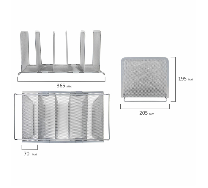 Подставка для сортировки писем и бумаг Brauberg «Germanium» позволит отсортировать и разместить рядом не только документацию и корреспонденцию, но и папки, планшеты, журналы различного размера. Изготовлена из металлической сетки черного цвета. Имеет 6 секций и 5 отделений. Размер - 195х205х365 мм.