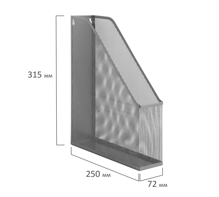 Вертикальный лоток для бумаг BRAUBERG «Germanium» для хранения документов позволит поддержать порядок на рабочем месте и сэкономит пространство на столе и в шкафу. Возможно настенное размещение. Выполнен из металла серебристого цвета с одним отделением. Предназначен для хранения бумаг формата А4. Представляет собой устойчивую долговечную неразборную конструкцию с сетчатыми боковыми поверхностями. Есть отверстия для настенного размещения. Размеры: высота - 315 мм, ширина - 72 мм, глубина - 250 мм.