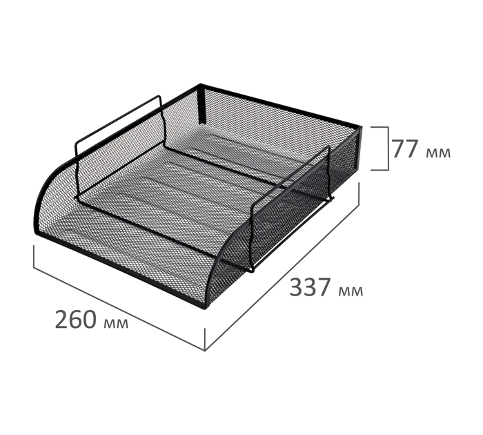 Горизонтальный лоток для бумаг BRAUBERG «Germanium» компактно сохранит на рабочем столе документацию, проспекты, каталоги и другую продукцию формата А4. Изготовлен из высококачественной прочной металлической сетки. Выполнен в классическом черном цвете. Размер лотка - 77х260х337 мм. Упакован в пакет.Поставляется в компактном разобранном виде., страна-производитель - Китай