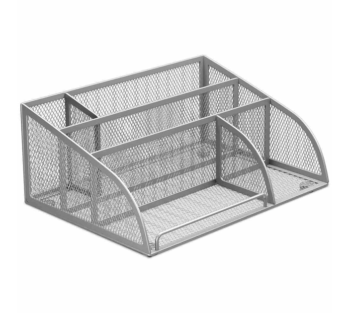 Подставка под канцелярские принадлежности Brauberg «Germanium» 5 отделений, серебристая, 255х180х105мм