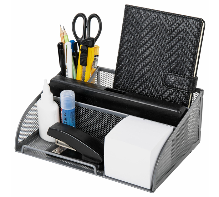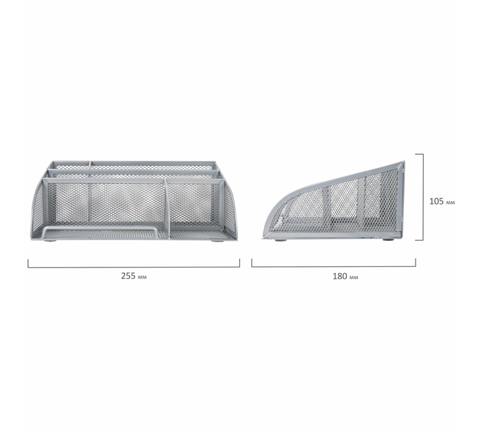 Практичная металлическая подставка-органайзер BRAUBERG «Germanium» для хранения различных канцелярских принадлежностей. Изготовлена из металлической сетки. Имеет размеры 255х180х105 мм. Состоит из 5-ти отделений для пишущих принадлежностей и канцелярских мелочей. Мягкие подушечки на дне предотвращают скольжение и порчу мебели. Подставка-органайзер упакована в фирменную коробку. Поставляется без канцелярского наполнения.