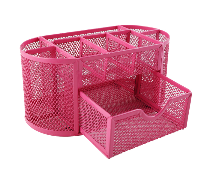 Подставка под канцелярские принадлежности Klerk 9 отделений, металлическая сетка, розовая, 110х220х100мм