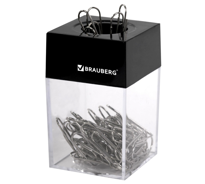 Диспенсер для скрепок Brauberg пластиковый, магнитный, ассорти +30 скрепок