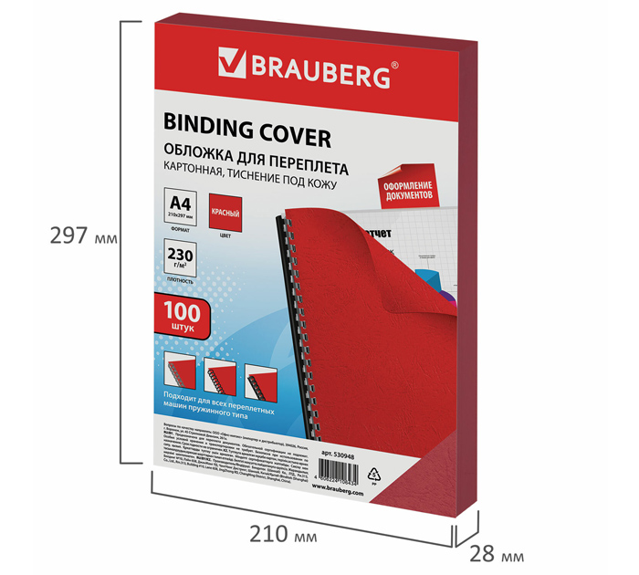 Обложки для переплета BRAUBERG придадут документам эстетичный внешний вид и защитят от повреждений. Предназначены для переплета документов брошюровщиком с помощью пластиковых и металлических пружин. Актуальны для создания деловых брошюр. Выполнены из прочного, износостойкого картона красного цвета и плотностью 230 г/м2. Тиснение под кожу. Подходят для документов формата А4. 100 штук в комплекте., страна-производитель - Китай