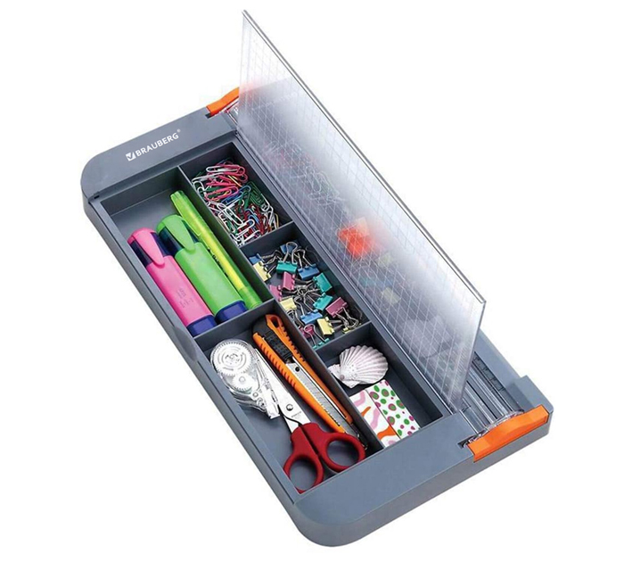 Роликовый резак для бумаги Brauberg может использоваться в офисах, учебных заведениях, фотомастерских для работы с документами и фотографиями, а также дома для хобби и творчества. Позволяет одновременно разрезать до 12 бумажных листов формата А4. Резак роликовый Brauberg Special используется в скрапбукинге, в оформительских работах и других видах творчества, а также при работе с документами и фотографиями. Максимальный формат - А4 (210х297 мм). Оснащен острым стальным безопасным лезвием (скрытый нож - выдвигается только при нажатии) с длиной реза 310 мм. Выполняет ровную прямую резку бумаги в обе стороны. Максимальное количество одновременно разрезаемых листов А4 плотностью 80 г/м2 - 12 шт. Подходит для резки офисной бумаги, тонкого картона, бумаги для скрапбукинга, фотобумаги, цветной бумаги и т.д. Корпус резака изготовлен из качественного HIPS пластика, который обеспечит долгую службу изделия. Вдоль линии реза нанесена шкала с миллиметровыми, дюймовыми делениями и градусной сеткой, которая обеспечит необходимую точность нарезки бумаг. Наличие резиновых ножек не позволяет изделию скользить по поверхности рабочего стола. Особая функция представленного резака - органайзер с 5 раздельными отделениями для удобного хранения канцелярских товаров. Резак роликовый Brauberg для дополнительной фиксации бумаги оснащен прижимом листов, что значительно улучшает качество реза. В комплекте гарантийный талон. У представленного резака компактный размер, благодаря этому он удобен при хранении и транспортировке. Страна-производитель - Китай