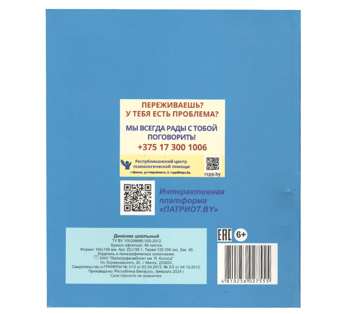 Дневник учащегося 5-11 классов твердая обложка, 2024 год, Брестская типография