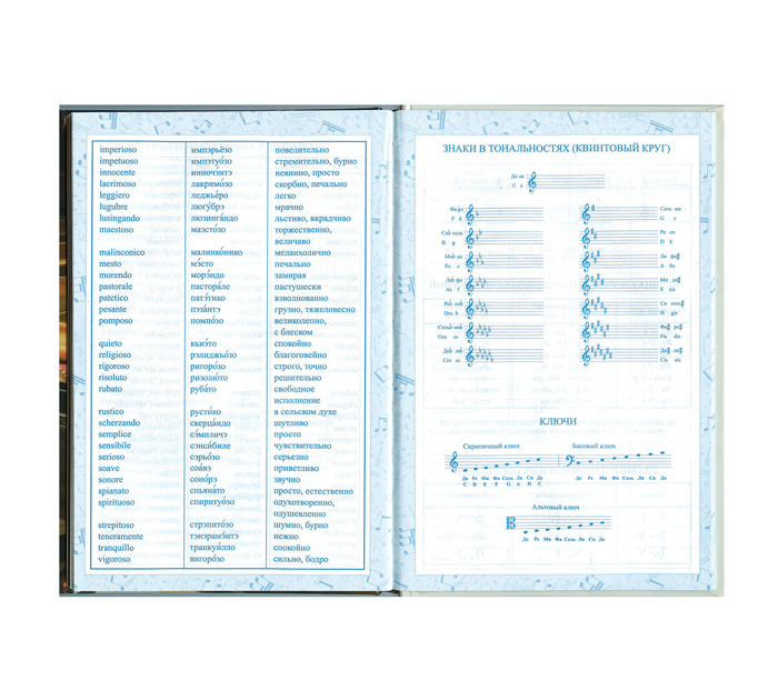 Дневник для музыкальной школы BRAUBERG поможет юному музыканту упорядочить учебный процесс и настроиться на творческий лад. Внутренний блок изготовлен из белой офсетной бумаги плотностью 60 г/м2. Содержит 48 листов для ведения записей и справочную информацию: длительности нот, интервалы, знаки в тональностях, ключи и пр. Твердая обложка надежно защищает бумагу и долго сохраняет привлекательный внешний вид. Выборочное лакирование эффектно подчеркивает отдельные элементы дизайна. Страна-производитель - Россия.