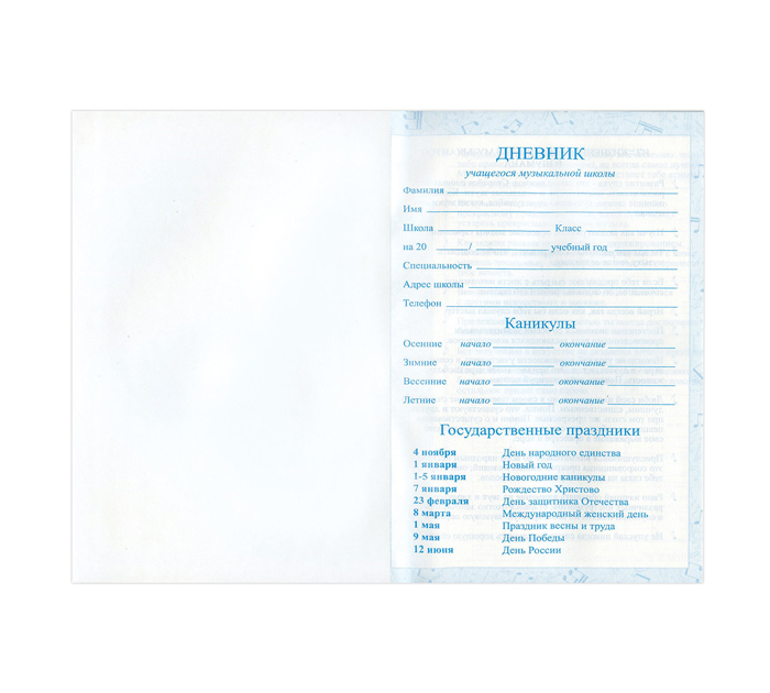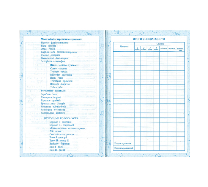 Дневник для музыкальной школы BRAUBERG поможет юному музыканту упорядочить учебный процесс и настроиться на творческий лад. Внутренний блок изготовлен из белой офсетной бумаги плотностью 60 г/м2. Содержит 48 листов для ведения записей и справочную информацию: длительности нот, интервалы, знаки в тональностях, ключи и пр. Твердая обложка надежно защищает бумагу и долго сохраняет привлекательный внешний вид. Благодаря ламинации краски на изображении становятся более яркими и насыщенными, исключается возможное истирание рисунка. Страна-производитель - Россия.
