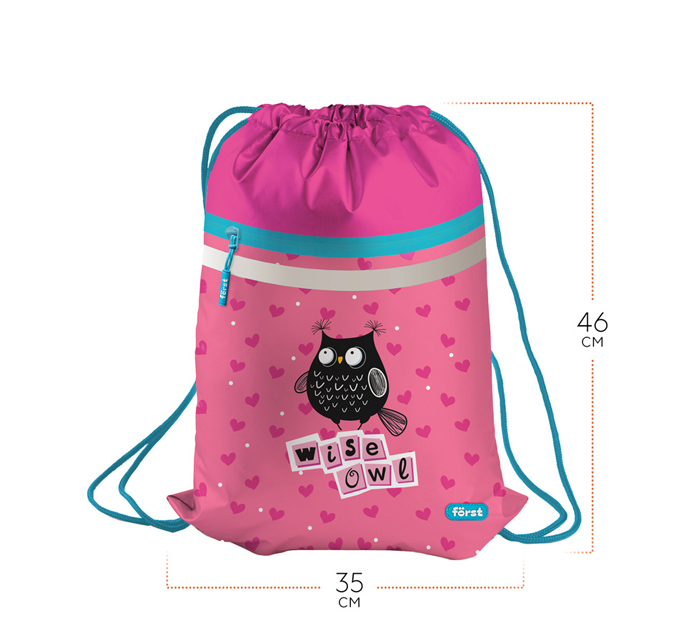 Мешок для обуви Forst «Black owl» 350х460мм, вентиляционная сеточка, светоотражающая полоса, карман на молнии