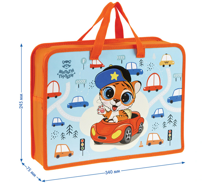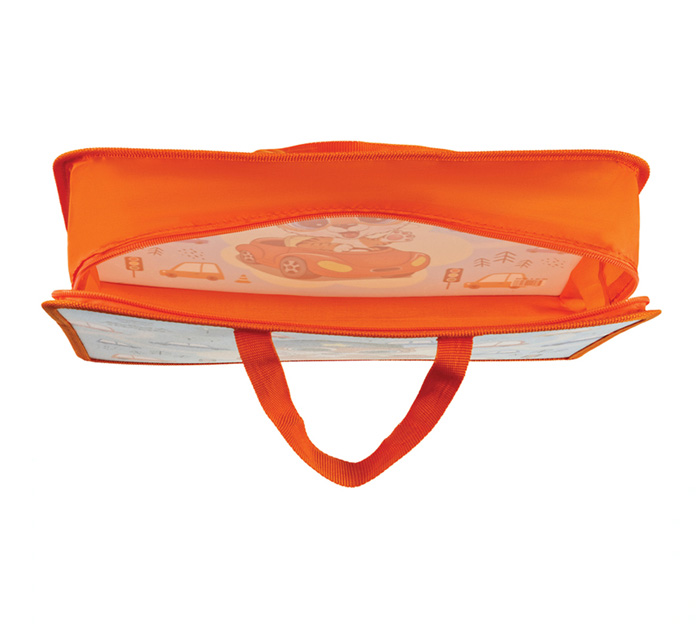 Папка на молнии с ручками формата А4 выполнена из пластика, по краям имеет тканевую окантовку. Одно отделение. Застежка-молния расположена по верхнему краю папки. Цветная печать. Практичная папка на молнии с ручками защитит учебные пособия и тетради от замятий и повреждений. Ручки-тесьма. Ширина папки 75 мм.
