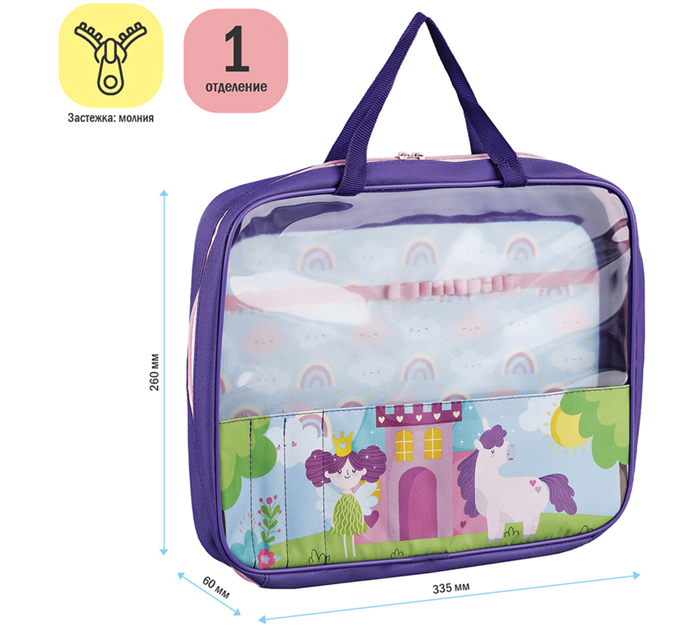 Папка-портфель текстильный ArtSpace «Princess» А4, с ручками, на молнии, 1 отделение, ширина папки 50мм
