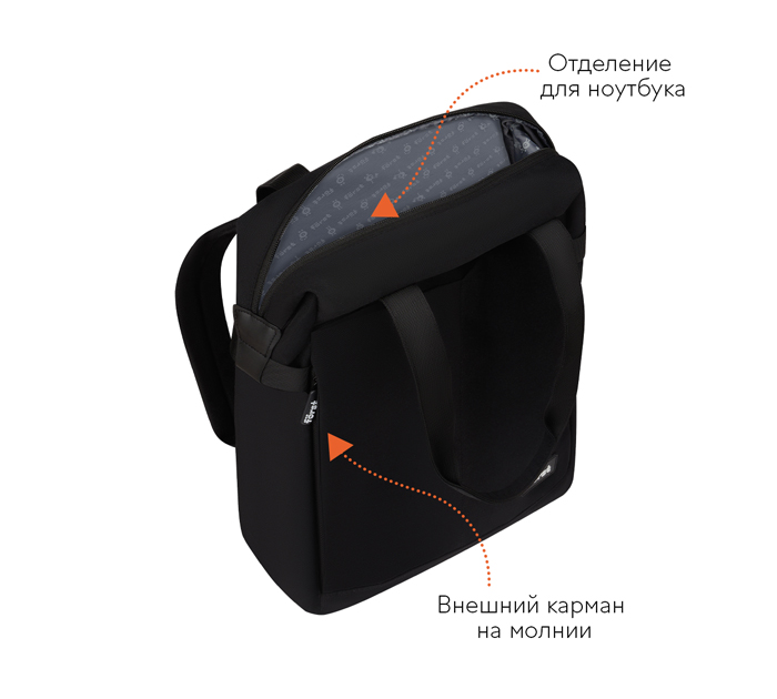 Рюкзак Forst «F-Casual Dark Black» 420х285х125мм, уплотненная спинка, 1 отделение, 1 карман