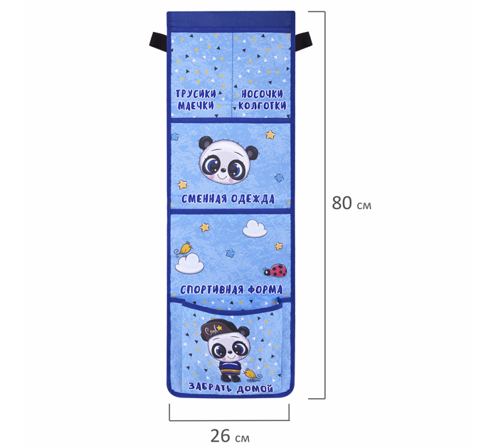 Кармашки-органайзер для шкафчика в детском саду – это современное и удобное решение для хранения детских вещей. Кармашки крепятся на дверку с помощью резинок по бокам. Органайзер имеет 5 карманов. Изготовлен из плотного полиэстера, хорошо держит форму и удобен в эксплуатации, яркий дизайн, при изготовлении используется качественная полноцветная печать. Размер органайзера с кармашками 26х80 см, крепится на дверку с помощью резинок по бокам. Органайзер имеет 5 карманов: 2 маленьких кармашка для мелочей, 2 средних и 1 кармашек увеличенного размера за счет складки для объема. На каждом кармашке имеются надписи-подсказки для упрощенной навигации в хранении личных предметов ребенка. Использование кармашков поможет приучить ребенка к порядку.Кармашки-органайзер упакованы в плотный ПЭТ-пакет, который сохранит качество и товарный вид при хранении и транспортировке.