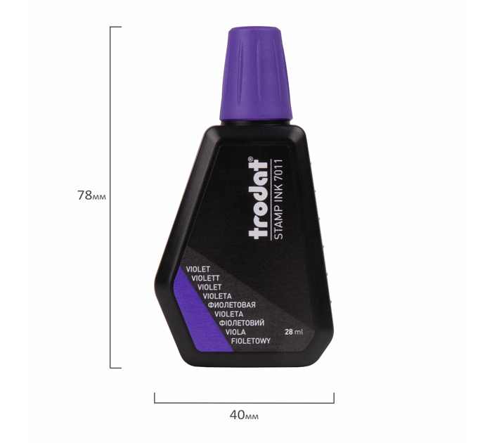 Штемпельная краска на водной основе для заправки штемпельных подушек. Оттиск штампа можно наносить на все виды бумаги, кроме глянцевой. Используется со всеми типами резиновых и полимерных клише. Для удобства использования флакон снабжен дозатором. Цвет штемпельной краски: фиолетовый. Назначение: для бумажных изделий. Объем флакона: 28 мл. Состав штемпельной краски: водно-глицериновая основа. Наличие дозатора: да. Серия: Stamp ink Trodat. Бренд - TRODAT. Производитель - Австрия.