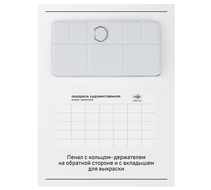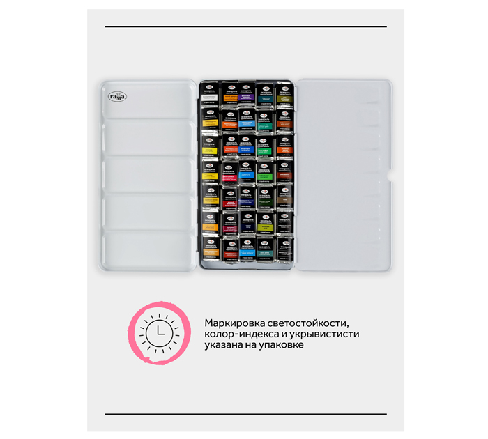 Набор акварельных красок ГАММА «Старый Мастер» в металлическом пенале состоит из 35 базовых цветов в кюветах 2,6 мл. Профессиональная акварель серии «Старый мастер» разработана в собственной исследовательской лаборатории завода. Краски изготовлены на основе органических и неорганических пигментов и гуммиарабика высшего качества. Цвета акварельных красок звонкие, чистые, прозрачные. Краски высокопигментированные, интенсивные, легко набираются на кисть. Маркировка светостойкости, колор-индекса и укрывистости указана на упаковке. Акварель отлично подойдёт как профессионалам, так и начинающим художникам. Набор представлен в металлическом пенале с удобными креплениями кювет, палитрой и кольцом-держателем на обратной стороне. Иллюстрация для упаковки предоставлена Ильёй Ибряевым. Состав набора: 009 Белила титановые, 103 Кадмий желтый средний, 109 Сиена натуральная, 110 Сиена жженая, 116 Охра желтая, 121 Неаполитанская желтая, 133 Лимонная, 161 Кадмий оранжевый светлый, 164 Пиррол оранжевый, 170 Индийская желтая, 203 Кадмий пурпурный, 207 Английская красная, 223 Розовый хинакридон, 227 Хинакридон алый, 252 Красно-розовый хинакридон, 311 Пурпурный хинакридон, 312 Фиолетовый диоксазин, 401 Голубая ФЦ, 410 Кобальт синий, 412 Бирюзовая, 417 Ультрамарин, 425 Индантреновый синий, 442 Кобальт церулеум, 503 Зеленая ФЦ, 509 Окись хрома, 518 Индиго, 520 Оливковая, 523 Желто-зеленая, 537 Зеленая темная, 591 Зеленый неон, 609 Умбра натуральная, 610 Умбра жженая, 617 Сепия, 703 Нейтральная черная, 709 Нейтральный тинт.